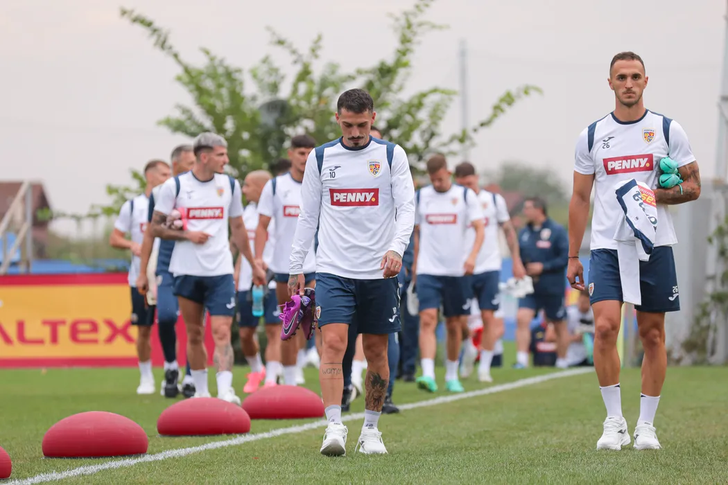 Marius Marin și Nicolae Stanciu la primul antrenament al naționalei României de dinaintea meciurilor cu Kosovo și Lituania din Liga Națiunilor, desfășurat pe Stadionul Mogoșoaia din cadrul Centrului Național de Fotbal, duminică 1 septembrie 2024. © FOTO: Mihai Antonio VASILE/SPORT PICTURES