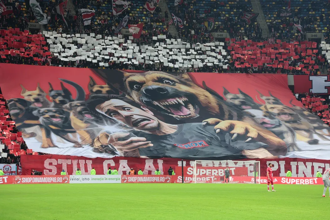 Câinii fioroși și Mona Lisa la Dinamo – FCSB! Scenografii spectaculoase pe Arena Națională. FOTO