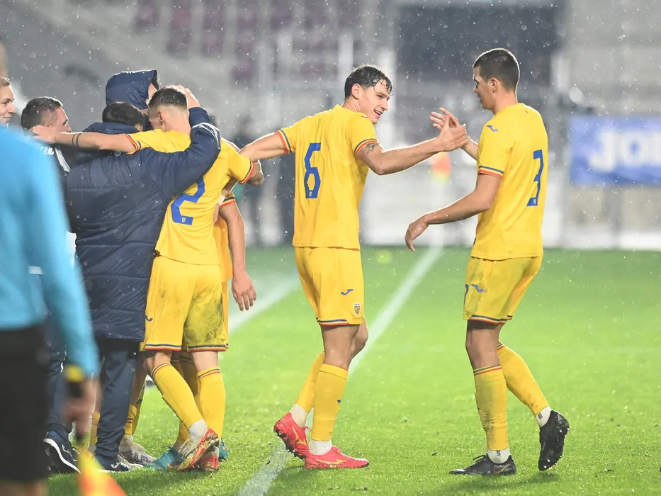 Bucurie a fotbalistilor romani dupa un gol marcat cu Alexandru Pantea,Matei Ilie si Cristian Ignat in meciul de fotbal dintre Romania U21 si Albania U21, contand pentru Preliminariile EURO 2025, desfasurat pe Stadionul Superbet Arena Giulesti din Bucuresti, vineri 17 noiembrie 2023. © FOTO:Razvan Pasarica/SPORT PICTURES
