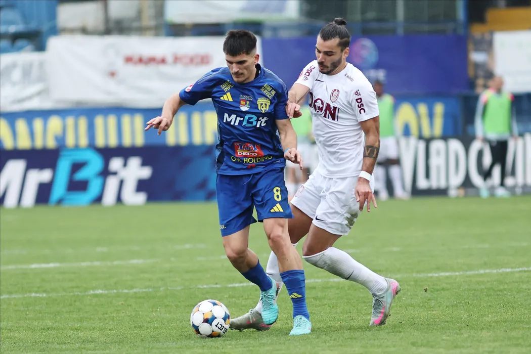 Ionut Viorel Coada si Karlo Muhar in meciul dintre Unirea Slobozia si CFR Cluj, contand pentru Superliga Superbet, desfasurat pe Clinceni Arena din Clinceni, duminica 9 noiembrie 2025. © FOTO:Gheorghe Fluster/SPORT PICTURES