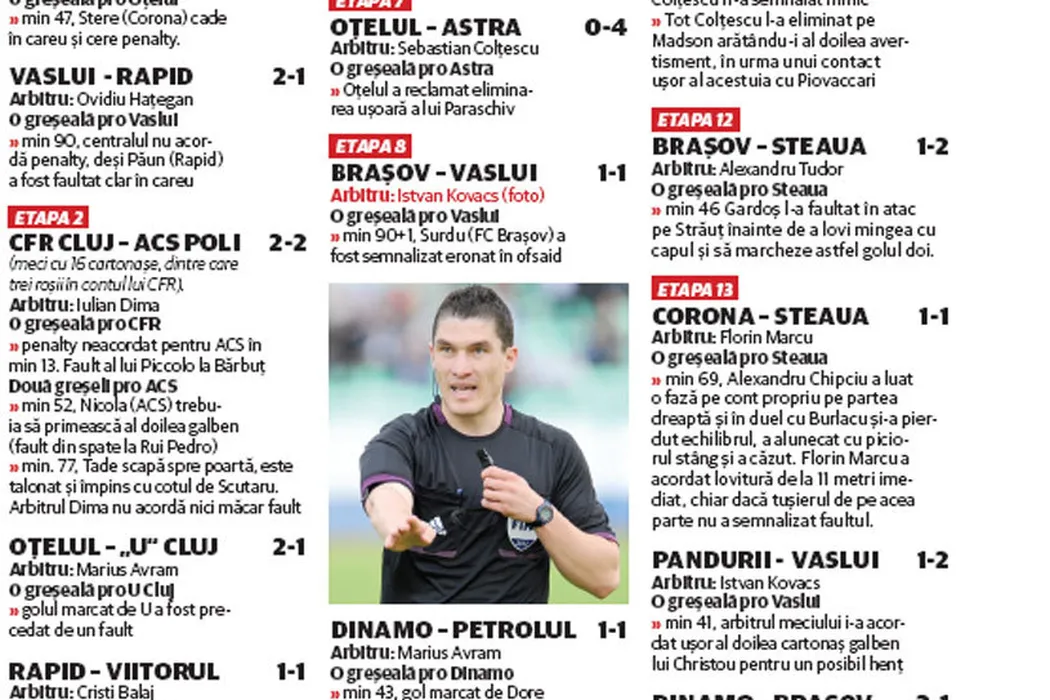 Campionatul erorilor. O treime din greșeli sunt în favoarea Stelei