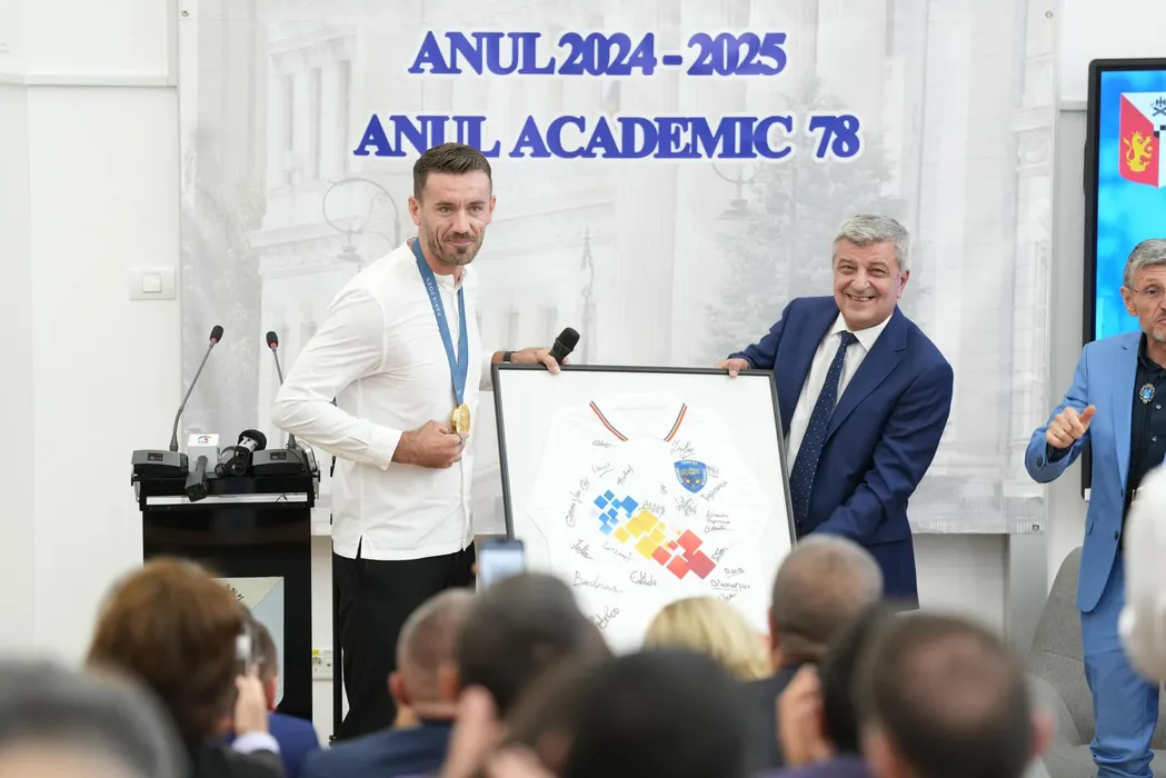 Campionul olimpic la canotaj, Florin Enache, la deschiderea anului academic la Universitatea din Craiova. Cinci medaliaţi la Paris vor deveni cetăţeni de onoare ai Craiovei