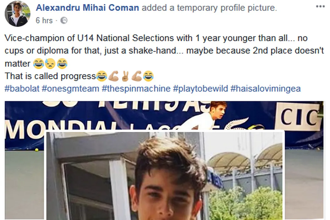 Când închei pe locul 2 și primești doar o strângere de mână. „Asta se numește progres!”. Tenisul din România, mereu surprinzător. El e Alexandru Coman, cvintuplu campion național, un puști care are puterea să facă haz de necaz