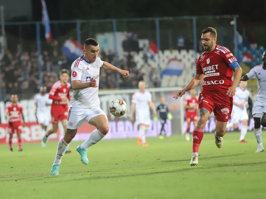 Anes Rusevic și Andrei George Miron în meciul de fotbal dintre SC Oțelul Galați si FC Botoșani, contând pentru Superliga Superbet Play-out, desfășurat pe Stadionul Oțelul din Galați, duminică 12 mai 2024. © FOTO: Valentin MUNTEANU/SPORT PICTURES