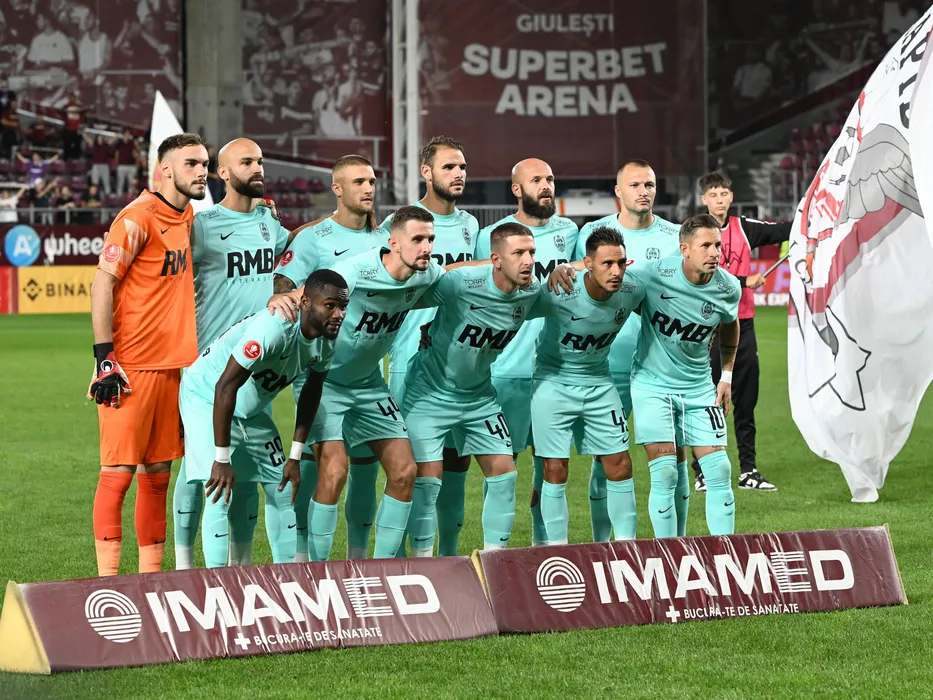 Fotbalistii clujeni la o fotografie de grup realizata inaintea meciului de fotbal dintre Rapid Bucuresti si CFR Cluj, din cadrul Superligii Superbet, desfasurat pe Superbet Arena-Giulesti din Bucuresti, luni 25 septembrie 2023. © FOTO:Razvan Pasarica/SPORT PICTURES
