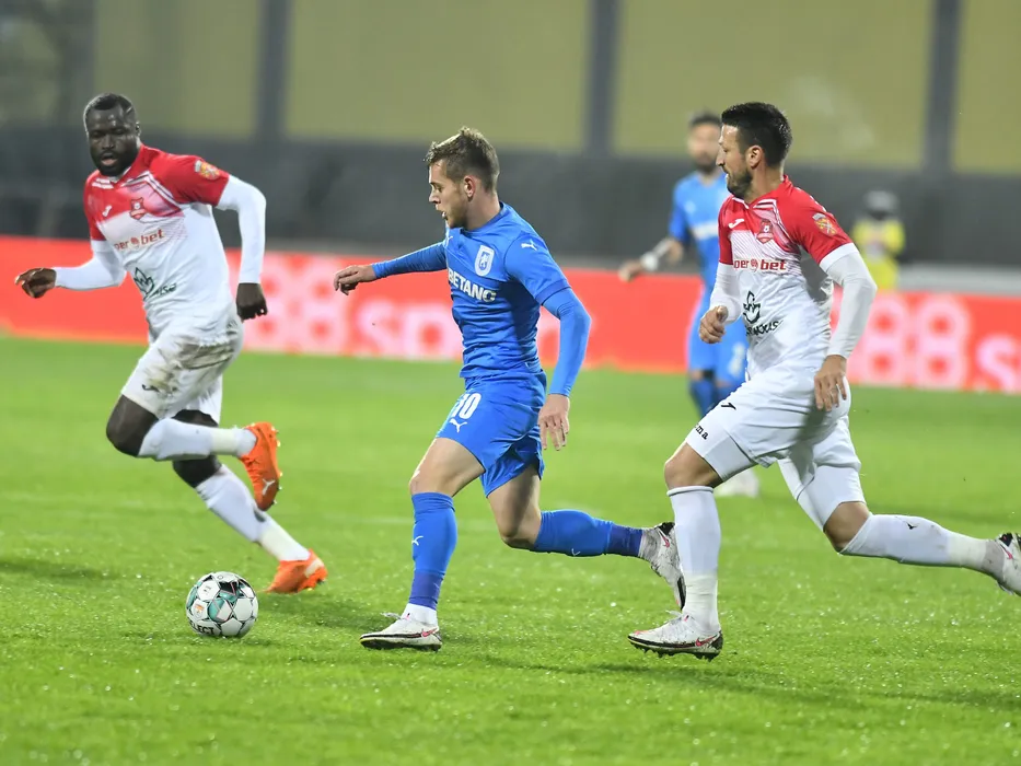 Bright Addae, Alexandru Cicaldau si Razvan Adrian Dalbea in meciul de fotbal dintre FC Hermannstadt si Universitatea Craiova, contand pentru Liga 1 Casa Pariurilor, desfasurat fara spectatori pe Stadionul Municipal din Medias, sambata 31 octombrie 2020. © FOTO:Razvan Pasarica/SPORT PICTURES