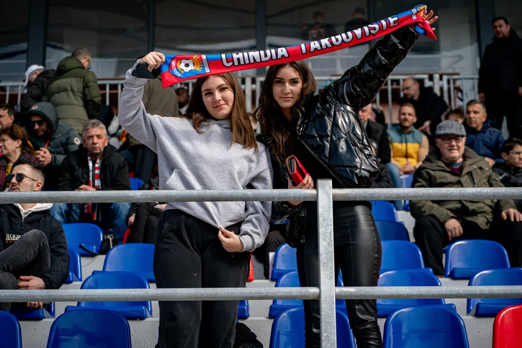 Bucurie în tribune la meciul de fotbal dintre Chindia Târgoviște și CSM Alexandria, contând pentru Liga 2 Casa Pariurilor, desfășurat pe Stadionul Eugen Popescu din Târgoviște, sâmbătă 9 martie 2024. © FOTO: Marius TUDOR/SPORT PICTURES