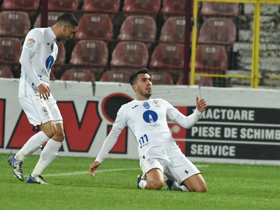 Jucatorii echipei Gaz Metan reactioneaza dupa inscrierea unui gol in meciul de fotbal dintre CFR Cluj - Gaz Metan Medias din etapa 9 a Ligii 1 Casa Pariurilor, disputat pe stadionul “Dr. Constantin Radulescu” din Cluj-Napoca, duminica, 1 noiembrie 2020.© FOTO:Flaviu Buboi / Sport Picture