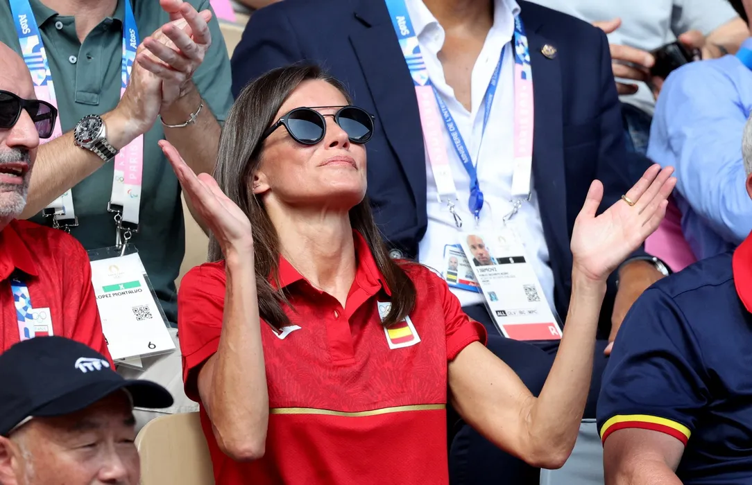 La reine Letizia d’Espagne - Célébrités assistent au 1/4 de finale de tennis entre C.Alcaraz et T.Paul lors des Jeux Olympiques de Paris 2024 (JO) à Roland Garros Paris, France, le 1er Aout 2024. © Jacovides-Perusseau/Bestimage Celebrities attend the quarter-final tennis match between C.Alcaraz and T.Paul during the Paris 2024 Olympic Games (Olympics) at Roland Garros Paris, France, August 1st, 2024.,Image: 894932987, License: Rights-managed, Restrictions: , Model Release: no