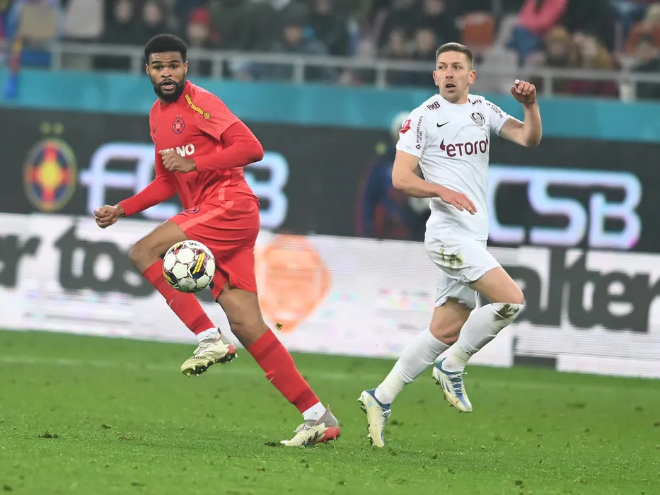 Sylas Laouari Edjouma Malcom si Lovro Cvek in meciul de fotbal dintre FCSB si CFR Cluj, contand pentru Superliga Superbet, desfasurat pe Arena Nationala din Bucuresti, joi 15 decembrie 2022. © FOTO:Razvan Pasarica/SPORT PICTURES