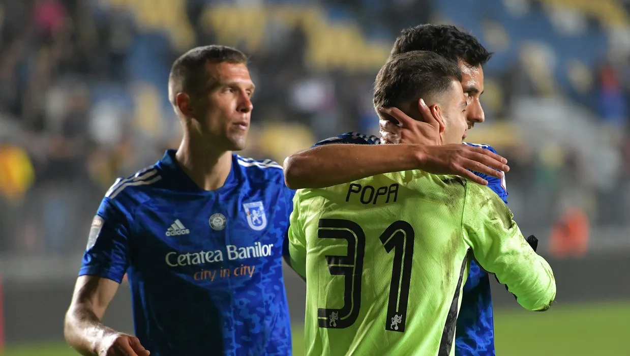 Claudiu Cristian Balan il felicita pe Dimitrie Robert Popa dupa meciul de fotbal dintre Petrolul Ploiesti si FC U Craiova, contand pentru Cupa Romaniei, desfasurat pe Stadionul Ilie Oana din Ploiesti, marti 21 septembrie 2021. © FOTO:Razvan Pasarica/SPORT PICTURES