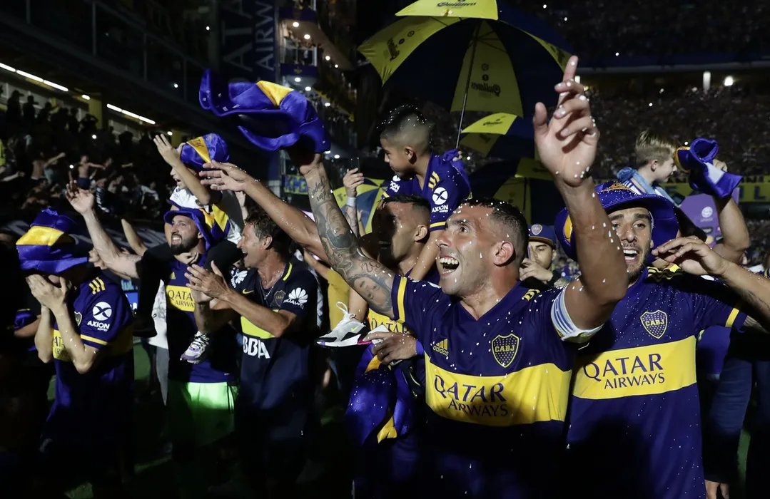 Boca Juniors' forward Carlos Tevez (R) celebrates with teammates after winning the Argentina First Division 2020 Superliga Tournament at La Bombonera stadium, in Buenos Aires, on March 7, 2020., Image: 504495292, License: Rights-managed, Restrictions: , Model Release: no, Credit line: ALEJANDRO PAGNI / AFP / Profimedia