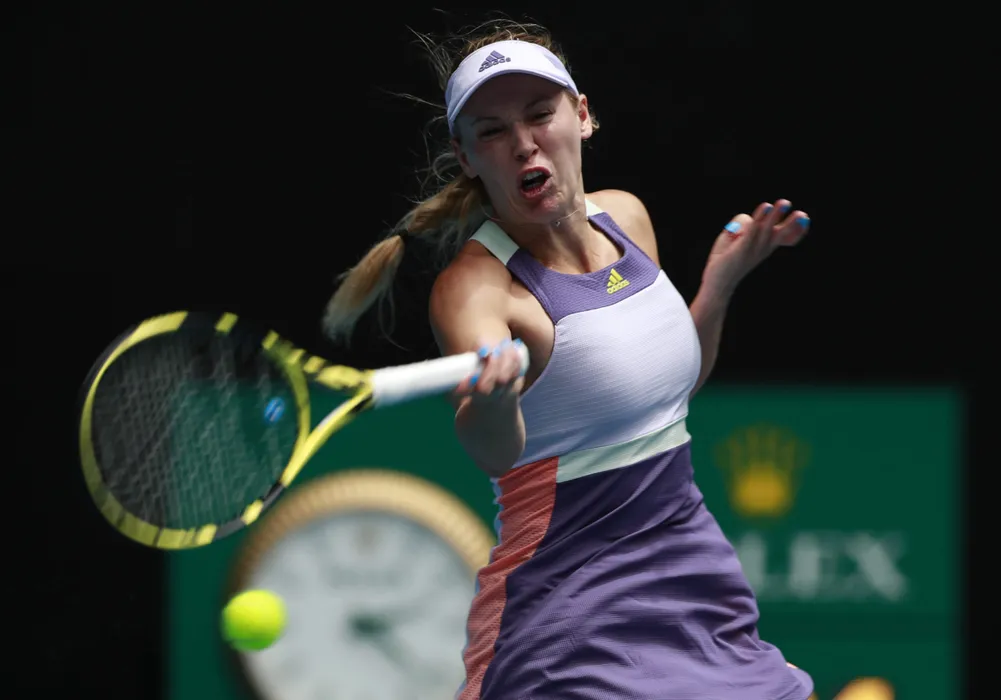 MELBOURNE, Jan. 22, 2020 Caroline Wozniacki of Denmark hits a return during the women's singles second round match against Dayana Yastremska of Ukraine at the 2020 Australian Open tennis tournament in Melbourne, Australia, Jan. 22, 2020. (Credit Image: © Wang Jingqiang/Xinhua via ZUMA Wire)