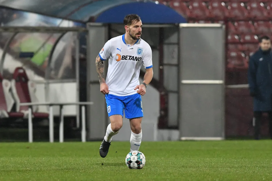 Mihai Balasa, de la Universitatea Craiova, suteaza in timpul meciului de fotbal contra echipei CFR Cluj din etapa a XV-a a Ligii 1, disputat pe stadionul Dr. Constantin Radulescu din Cluj-Napoca, marti, 22 decembrie 2020. FLAVIU BUBOI / MEDIAFAX FOTO