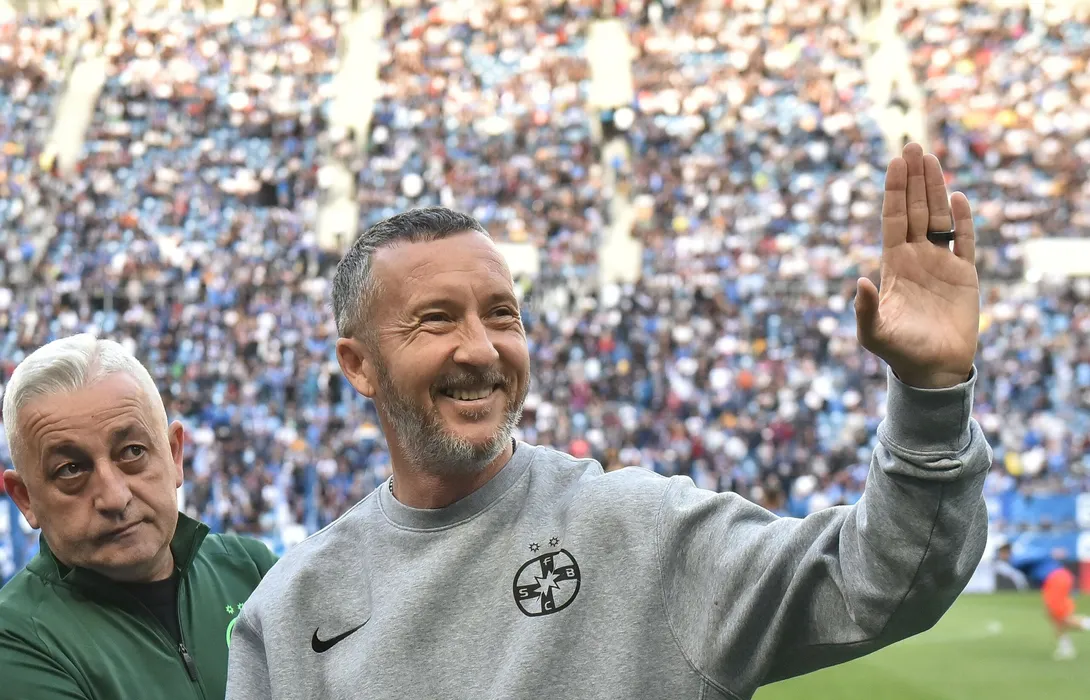 Emil Pieleanu alaturi de Mihai Stoica la meciul de fotbal dintre Universitatea Craiova si FCSB, contand pentru Play-off-ul Ligii 1 Casa Pariurilor, desfasurat pe Stadionul Ion Oblemenco din Craiova, duminica 8 mai 2022. © FOTO:Razvan Pasarica/SPORT PICTURES