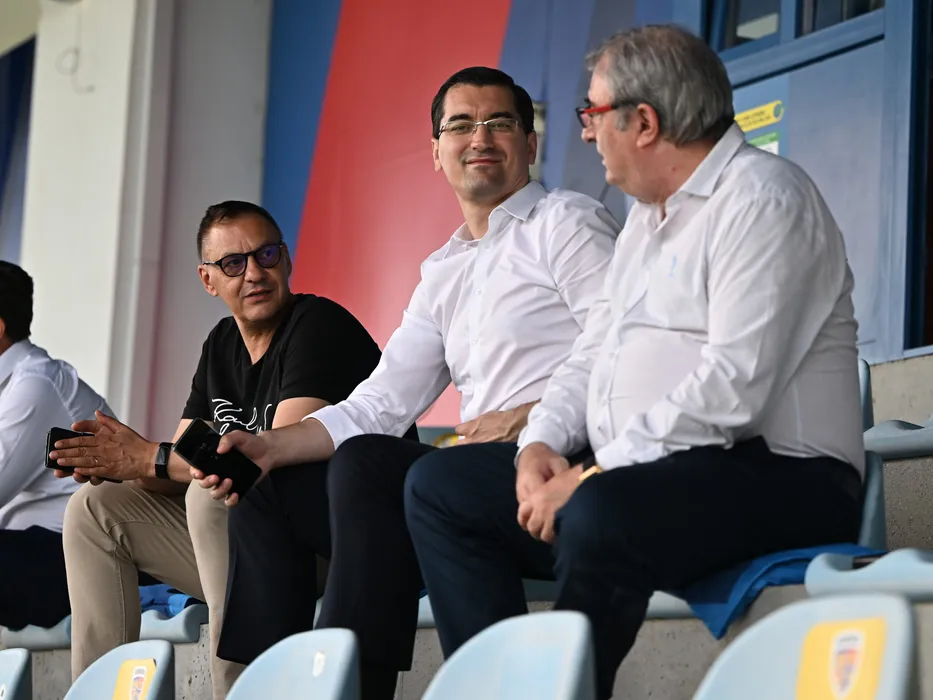 Andrei Vochin, Razvan Burleanu si Mihai Stoichita asista la un antrenament efectuat inaintea meciului amical impotriva Liechtenstein, desfasurat la Centrul National de Fotbal de la Mogosoaia, joi 6 iunie 2024. © FOTO:Razvan Pasarica/SPORT PICTURES