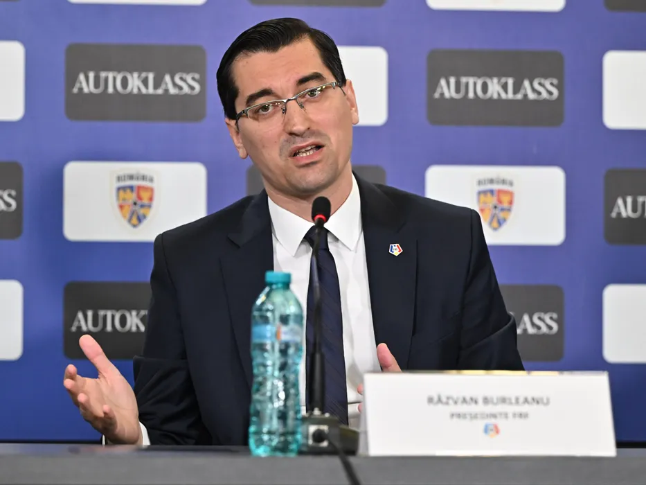 Razvan Burleanu participa la conferinta de presa desfasurata cu ocazia prelungirii parteneriatului dintre Federatia Romana de Fotbal si Autoklass, la Sediul FRF din Bucuresti, marti 23 aprilie 2024. © FOTO:Razvan Pasarica/SPORT PICTURES