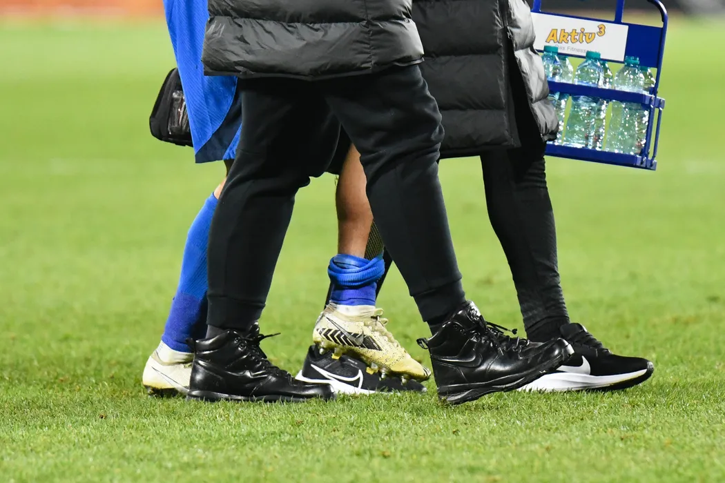 Darius Dumitru Olaru accidentat părăsește terenul încă din prima repriză în meciul de fotbal dintre FC CFR 1907 Cluj SA si FC Fotbal Club FCSB SA, contând pentru Superliga Superbet, desfășurat pe Stadionul Dr.Constantin Rădulescu din Cluj-Napoca, duminică 10 decembrie 2023. © FOTO: Flaviu BUBOI/SPORT PICTURES