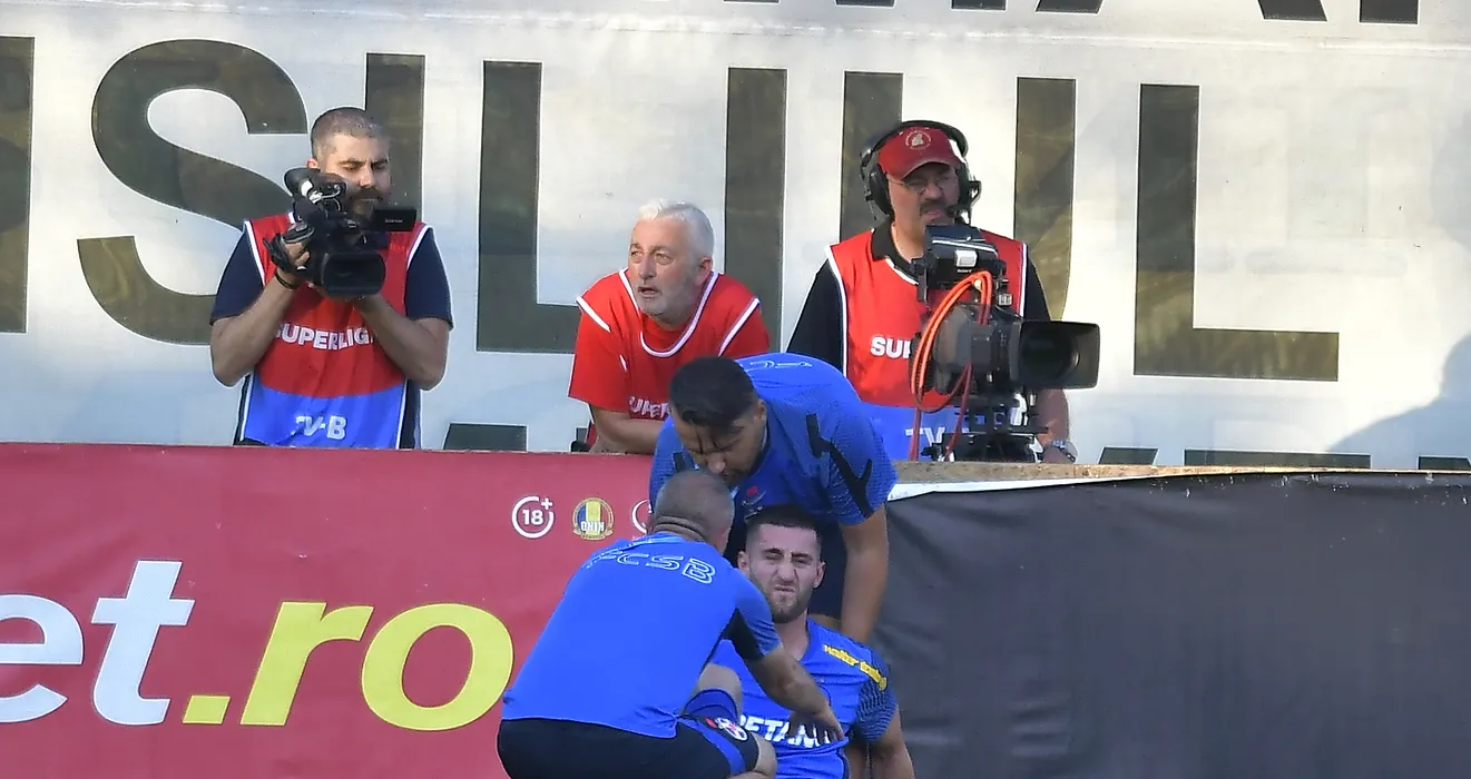 Ovidiu Marian Popescu accidentat in meciul de fotbal dintre CS Mioveni si FCSB, contand pentru Superliga Superbet, desfasurat pe Stadionul Orasenesc din Mioveni, sambata 6 august 2022. © FOTO:Razvan Pasarica/SPORT PICTURES