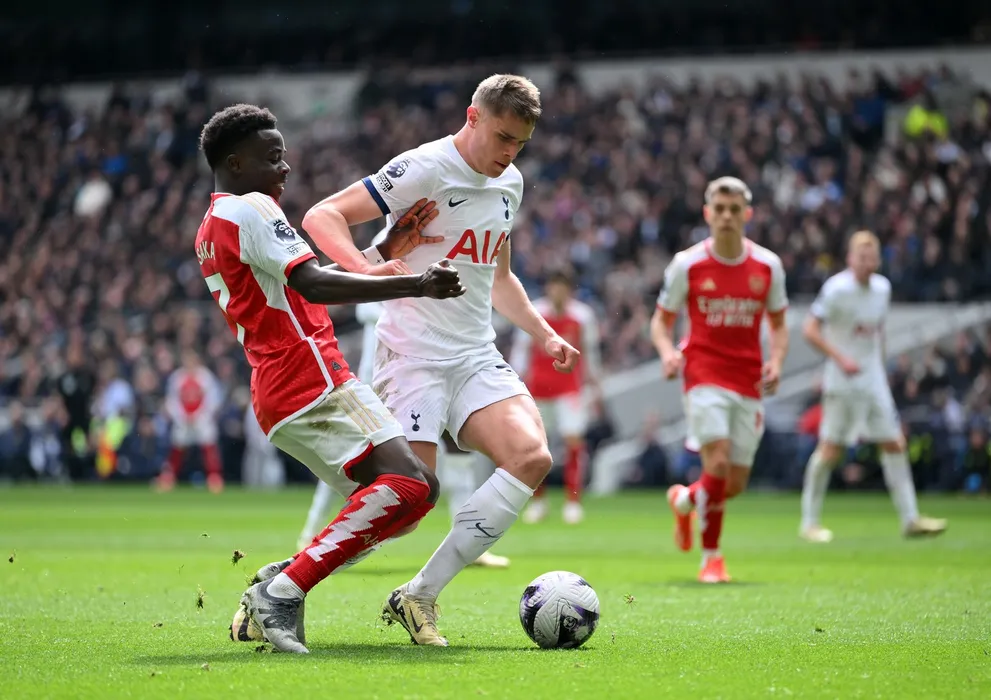 Tottenham Hotspur v Arsenal, Premier League, Football, Tottenham Hotspur Stadium, London, UK - 28 Apr 2024,Image: 868644749, License: Rights-managed, Restrictions: EDITORIAL USE ONLY No use with unauthorised audio, video, data, fixture lists, club/league logos or "live" services. Online in-match use limited to 120 images, no video emulation. No use in betting, games or single club/league/player publications., Model Release: no