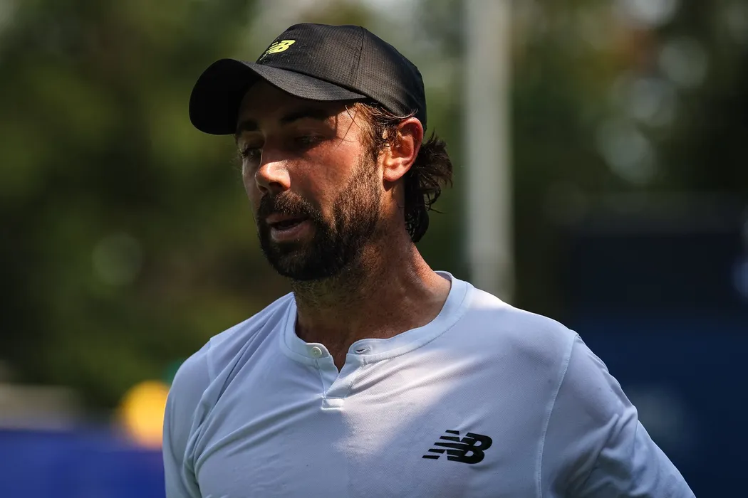 WASHINGTON, DC - AUGUST 01: Jordan Thompson looks on during the match against Giovanni Mpetshi Perricard during day 6 of the Mubadala Citi DC Open 2024 at William H.G. FitzGerald Tennis Center on August 1, 2024 in Washington, DC. Scott Taetsch,Image: 895056322, License: Rights-managed, Restrictions: , Model Release: no
