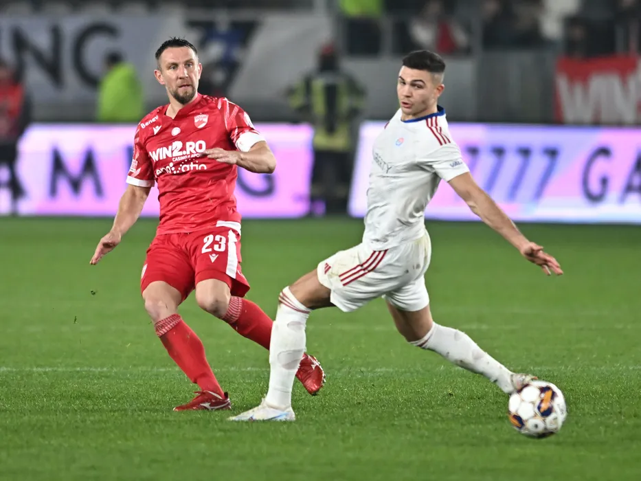 Răzvan Bogdan Patriche Nichita si Samuel Teles Pereira Nunes Da Silva in meciul de fotbal dintre Dinamo Bucuresti si Otelul Galati, din cadrul Superligii Superbet, desfasurat pe Stadionul National Arcul de Triumf din Bucuresti, duminica 18 februarie 2024. © FOTO:Razvan Pasarica/SPORT PICTURES