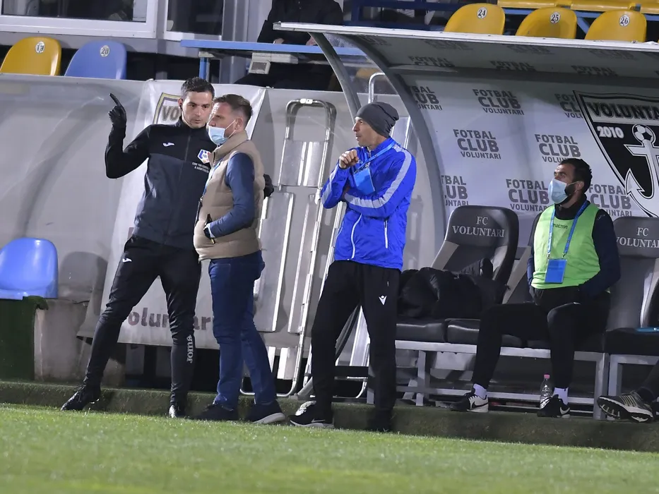 Arbitrul de rezerva Florin Andrei alaturi de Florin Cernat si Bogdan Andone in meciul de fotbal dintre FC Voluntari si FC Viitorul Constanta, contand pentru Play-off-ul Ligii 1 Casa Pariurilor, desfasurat fara spectatori pe Stadionul Anghel Iordanescu din Voluntari, luni 26 aprilie 2021. © FOTO:Razvan Pasarica/SPORT PICTURES