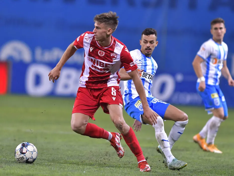 Catalin Mihai Itu si Lyes Hafid Houri in meciul de fotbal dintre Universitatea Craiova si Dinamo Bucuresti, contand pentru Liga 1 Casa Pariurilor, desfasurat pe Stadionul Ion Oblemenco din Craiova, luni 27 septembrie 2021. © FOTO:Razvan Pasarica/SPORT PICTURES