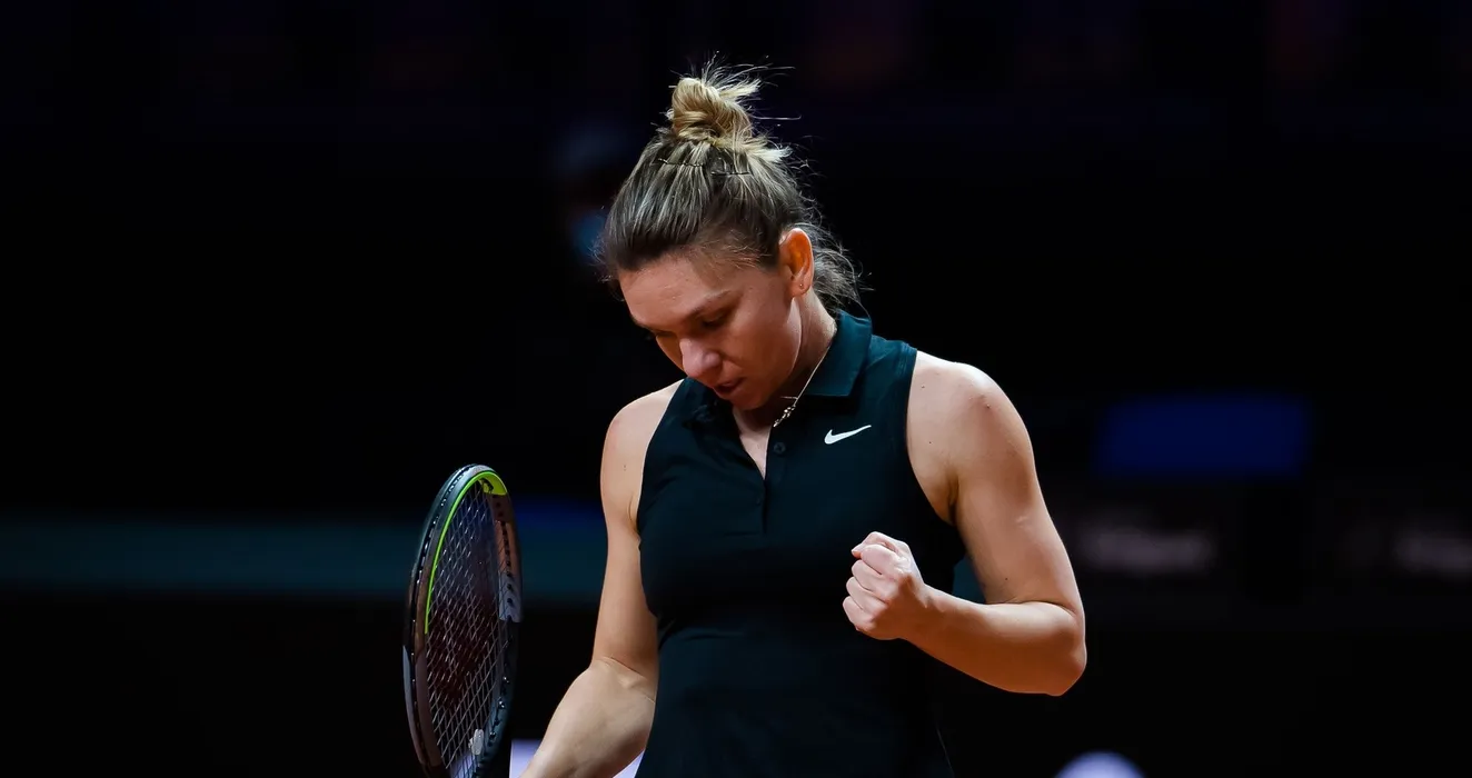 Simona Halep of Romania in action during her second-round match at the 2021 Porsche Tennis Grand Prix WTA 500 tournament