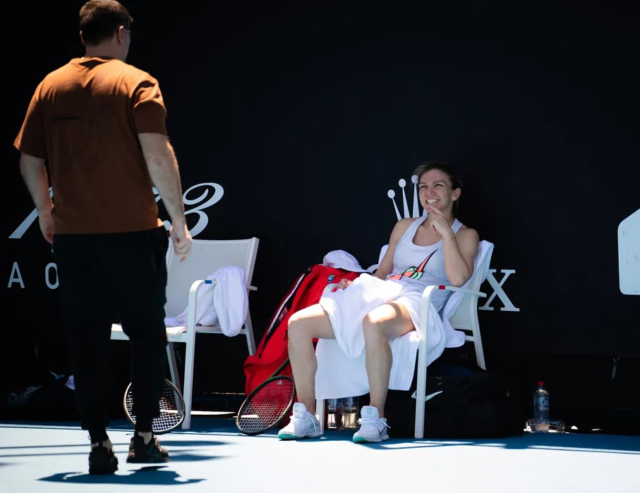 Simona Halep of Romania with husband Toni Iuruc during practice ahead of the 2022 Australian Open Grand Slam tennis tournament