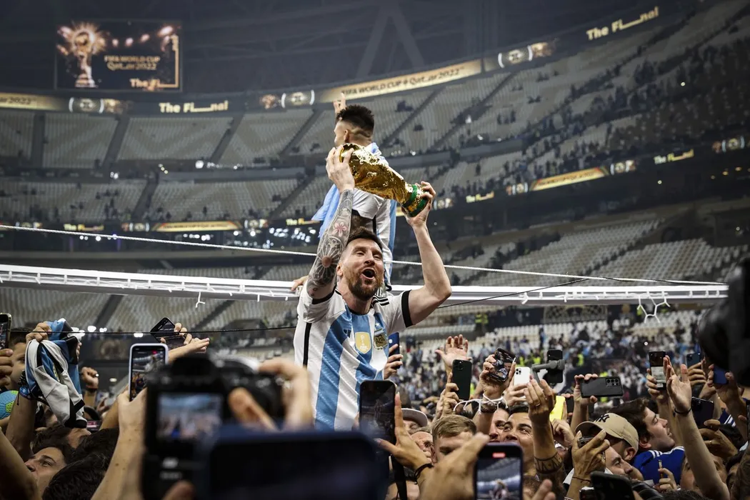 AL DAAYEN - Lionel Messi of Argentina with the world cup trophy, FIFA World Cup Trophy after the FIFA World Cup Qatar 2022 final match between Argentina and France at Lusail Stadium on December 18, 2022 in Al Daayen, Qatar.