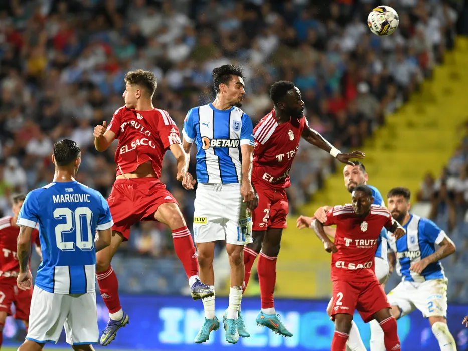 Stefan Baiaram si Kevin Gnoher Boli in meciul de fotbal dintre Universitatea Craiova si FC Botosani, contand pentru Superliga Superbet, desfasurat pe Stadionul Municipal din Drobeta Turnu Severin, luni 29 august 2022. © FOTO:Razvan Pasarica/SPORT PICTURES