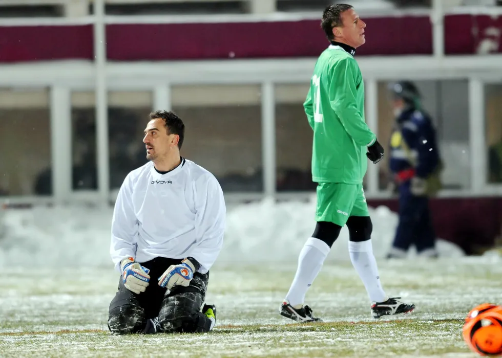 George Curca si Adrian Senin tristi dupa golul primit.