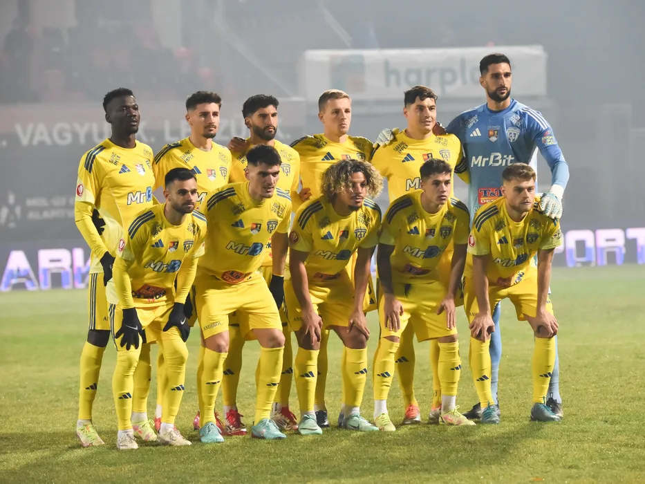 Fotbalistii ialomiteni la o fotografie de grup realizata inaintea meciului de fotbal dintre FK Csikszereda Miercurea Ciuc si AFC Unirea 04 Slobozia, contand pentru Superliga Superbet, desfasurat pe Stadionul Municipal din Miercurea Ciuc, vineri 21 noiembrie 2025. © FOTO:Zoltan Pal/SPORT PICTURES