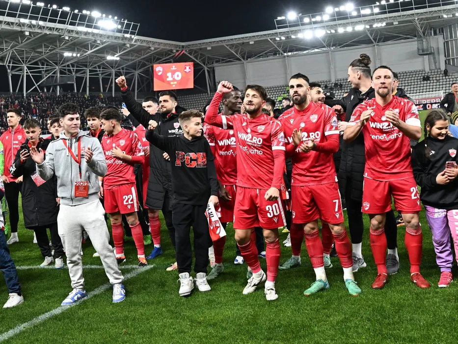 FotbaliČtii dinamoviČti Andrei Ahmed Mustafa Bani, NeluČ Stelian RoČu, Goncalo De Almeida Gregorio si Edgar Miguel Ie salutÄ� galeria dupÄ� meciul de fotbal dintre Dinamo Bucuresti si FC Hermannstadt, din cadrul Superligii Superbet, desfasurat pe Stadionul National Arcul de Triumf din Bucuresti, marti 27 februarie 2024. Bucuresti *** Dinamo footballers Andrei Ahmed Mustafa Bani, NeluČ Stelian RoČu, Goncalo De Almeida Gregorio and Edgar Miguel Ie greet the gallery after the football match between Dinamo Bucharest and FC Hermannstadt, within the Superbet Super League, held at the Arcul de Triumf National Stadium in Bucharest, Tuesday, February 27, 2024 Bucharest Copyright: xRazvanxPasarica/SPORTxPICTURESx,Image: 853481510, License: Rights-managed, Restrictions: Credit images as "Profimedia/ IMAGO", Model Release: no