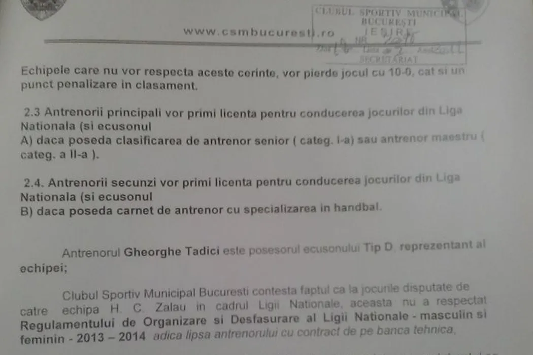 Cazul „Tadici” este nul. HC Zalău are contract înregistrat al antrenorului la federație. CSM București rămâne în play-out
