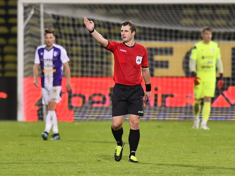 Arbitrul central Sorin Costreie in meciul de fotbal dintre FC Arges si FC Voluntari, contand pentru Liga 1 Casa Pariurilor, desfasurat fara spectatori pe Stadionul Nicolae Dobrin din Pitesti, vineri 30 octombrie 2020. © FOTO:Razvan Pasarica/SPORT PICTURES