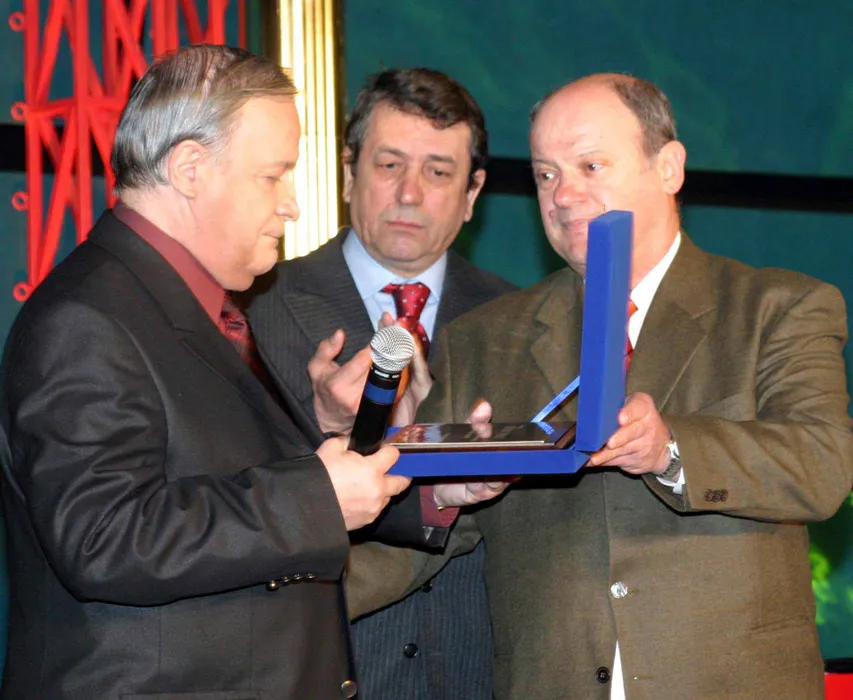 "Gala Cristian Topescu - 40 de ani de televiziune" s-a desfasurat, vineri, in Sala "Liviu Rebreanu" a Teatrului National. In imagine, Cristian Topescu, Valentin Samungi si Gheorghe Goran