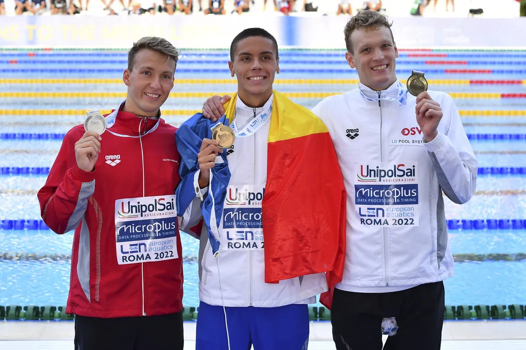August 15, 2022, Rome, Italy: POPOVICI David (ROU), POPOVICI David (SUI) and AUBOECK Felix (AUT) during the LEN European Swimming Championships finals on 15th August 2022 at the Foro Italico in Rome, Italy. (Credit Image: © Domenico Cippitelli/LPS via ZUMA Press Wire)