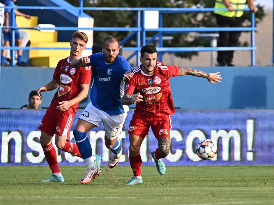 Andres Mihai Dumitrescu, Denis Alibec si Cosmin Gabriel Matei in meciul de fotbal dintre Farul Constanta si Sepsi OSK Sfantu Gheorghe, contand pentru Superliga Superbet, desfasurat pe Stadionul central al Academiei Gheorghe Hagi din Ovidiu, duminica 22 septembrie 2024. © FOTO:Razvan Pasarica/SPORT PICTURES