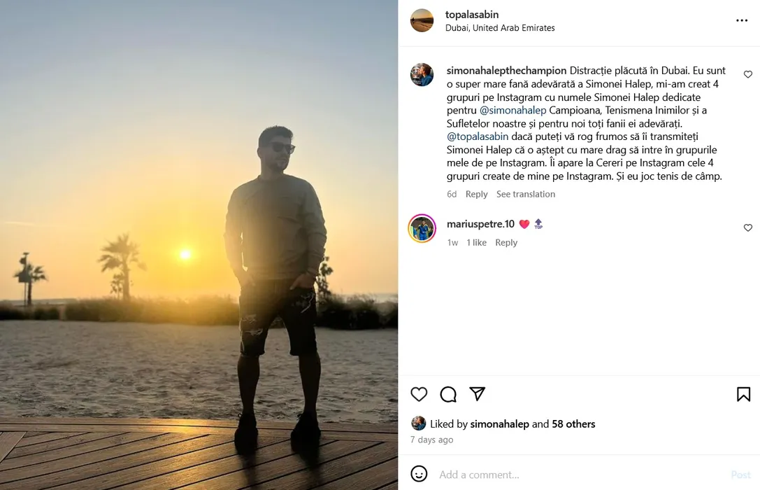 Ce a postat bărbatul cu care a plecat Simona Halep la Dubai! Campioana tenisului i-a dat like instant. FOTO