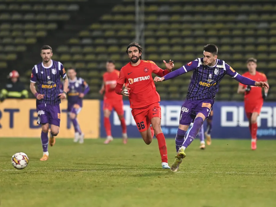 Andrea Compagno si Mario Zebic in meciul de fotbal dintre FC Arges si FCSB, contand pentru Superliga Superbet, desfasurat pe Stadionul Nicolae Dobrin din Pitesti, duminica 26 februarie 2023. © FOTO:Razvan Pasarica/SPORT PICTURES