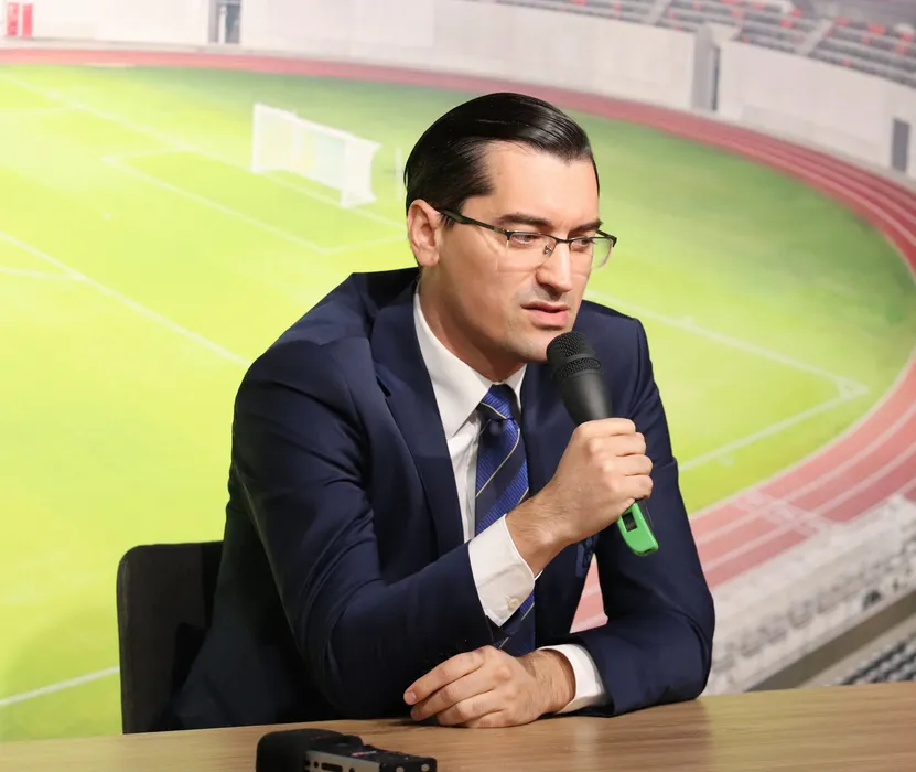 Stadionul Municipal din Sibiu a fost inaugurat in prezenta mai multor copii de la grupele de juniori ale celor de la Hermannstadt care au schimbat cateva pase iar primarul Astrid Fodor a sustinut o conferinta de presa in compania presedintelui FRF Razvan Burleanu, marti 06 decembrie 2022. © FOTO: Macrea Valentin/SPORT PICTURES