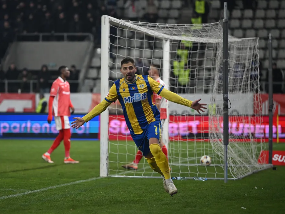 Gheorghe Teodor Grozav se bucură dupa un gol marcat in meciul de fotbal dintre Dinamo Bucuresti si Petrolul Ploiesti, din cadrul Superligii Superbet, desfasurat pe Stadionul Arcul de Triumf din Bucuresti, vineri 30 ianuarie 2026. © FOTO:Razvan Pasarica/SPORT PICTURES