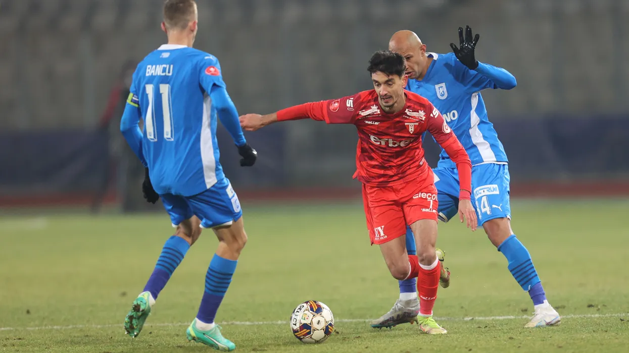 Albert Tivadar Stahl și Raul Michel Melo Da Silva, Nicușor Silviu Bancu în meciul de fotbal dintre AFC UTA Arad si Universitatea Craiova, contând pentru Superliga Superbet, desfășurat pe Stadionul Cluj Arena din Cluj-Napoca, miercuri 20 decembrie 2023. © FOTO:Ciprian PETCUT/SPORT PICTURES