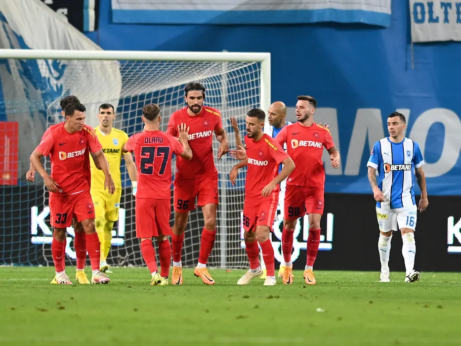 Andrea Compagno se bucura dupa un gol marcat alaturi de fotbalistii stelisti Risto Radunovic, Razvan Constantin Oaida si Andrei Ioan Cordea in meciul de fotbal dintre Universitatea Craiova si FCSB, contand pentru Superliga Superbet, desfasurat pe Stadionul Ion Oblemenco din Craiova, duminica 18 septembrie 2022. © FOTO:Razvan Pasarica/SPORT PICTURES