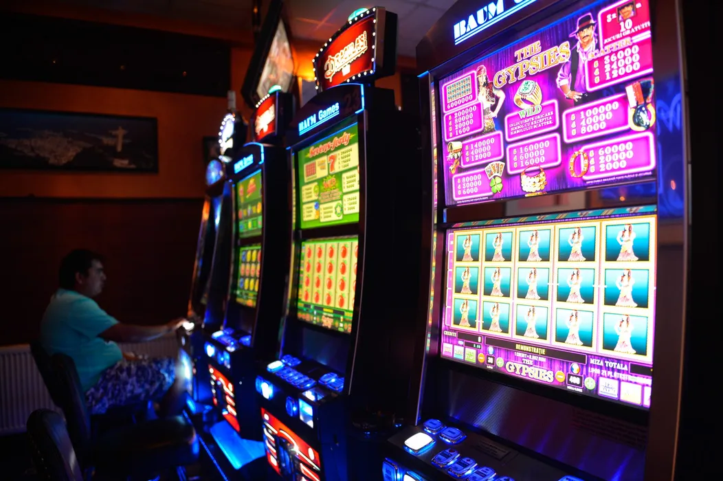 O persoana joaca la aparatele de sloturi intr-o sala de jocuri, in Sighisoara, sambata, 9 august 2014. RAZVAN LUPICA / MEDIAFAX FOTO