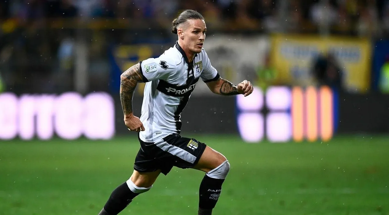 PARMA, ITALY - August 12, 2022: Dennis Man of Parma Calcio in action during the Serie B football match between Parma Calcio and SSC Bari.,Image: 713782060, License: Rights-managed, Restrictions: *** World Rights ***, Model Release: no