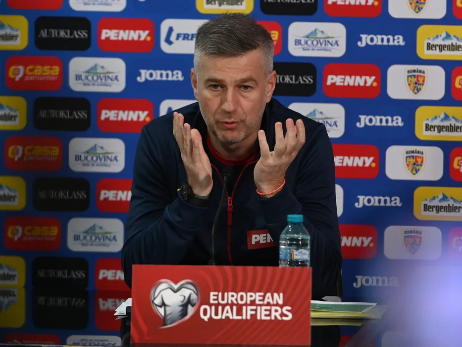 Edward Iordanescu la conferinta de presa a Romaniei de dinaintea meciului impotriva Belarus, din cadrul preliminariilor Campionatului European 2024, desfasurata la Centrul National de Fotbal de la Buftea, luni 27 martie 2023. © FOTO:Razvan Pasarica/SPORT PICTURES