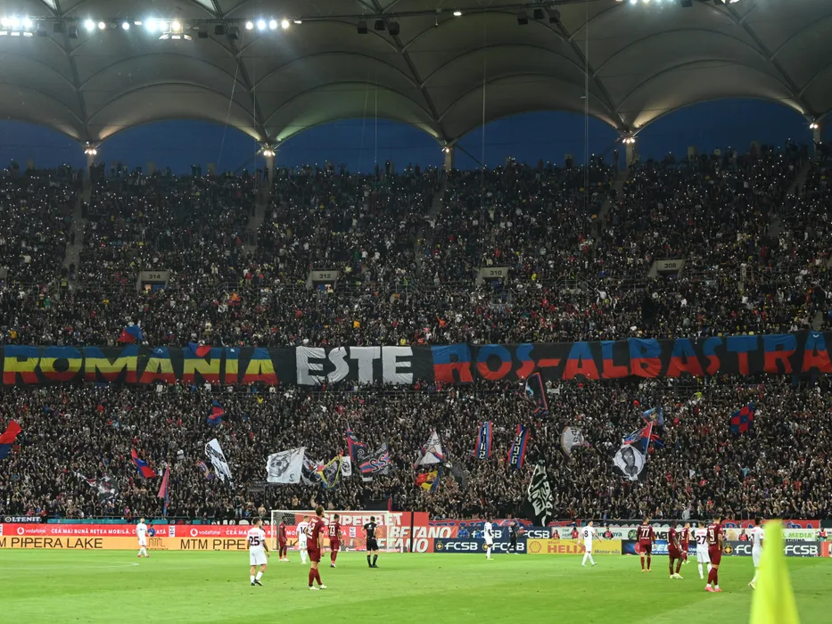 Galeria stelista cu luminitele telefoanelor mobile aprinse la meciul de fotbal dintre FCSB si CFR Cluj, contând pentru Play off-ul Superligii Superbet, desfășurat pe Arena Nationala din Bucuresti, sambata 11 mai 2024. © FOTO: Razvan Pasarica/SPORT PICTURES